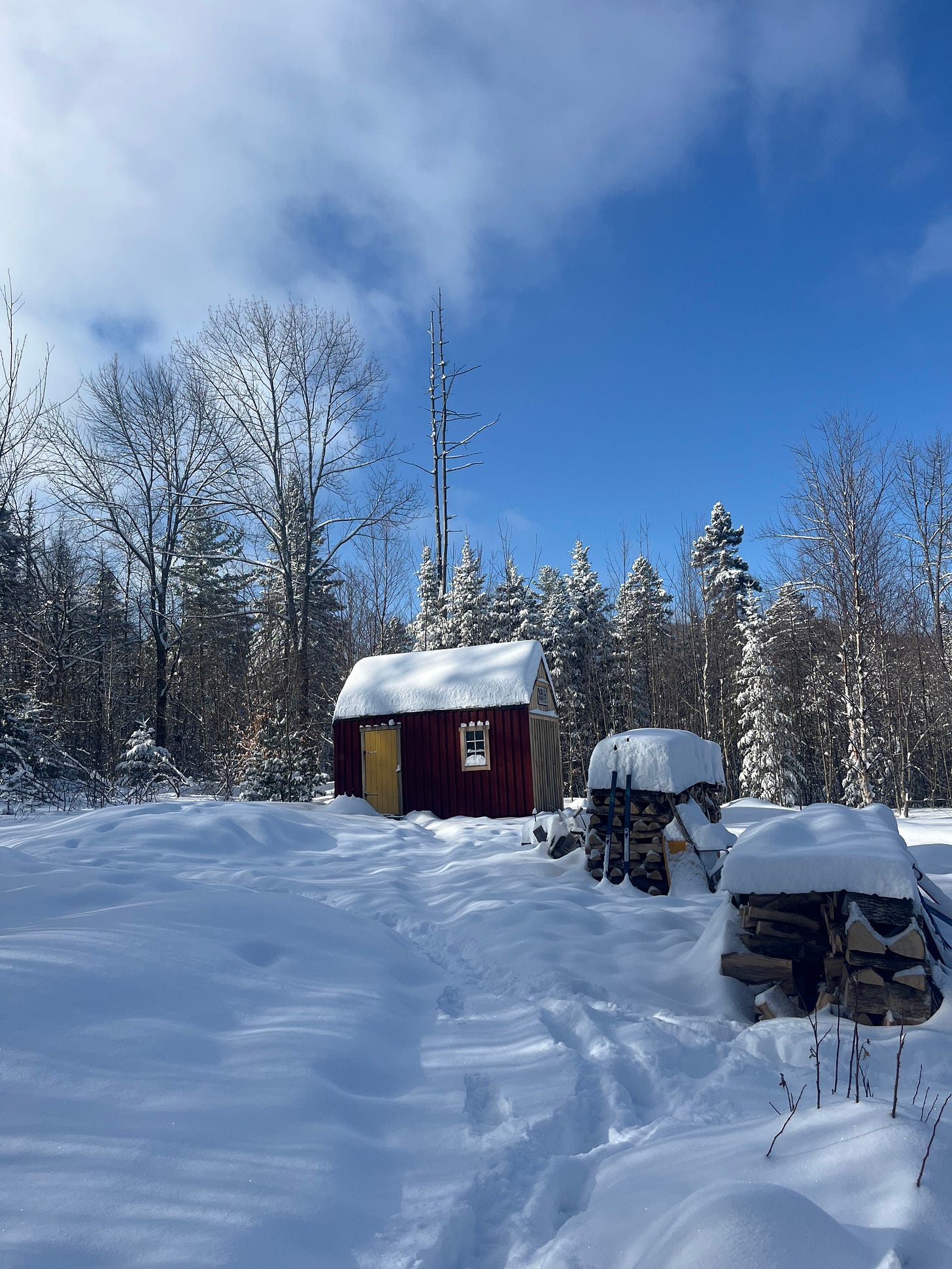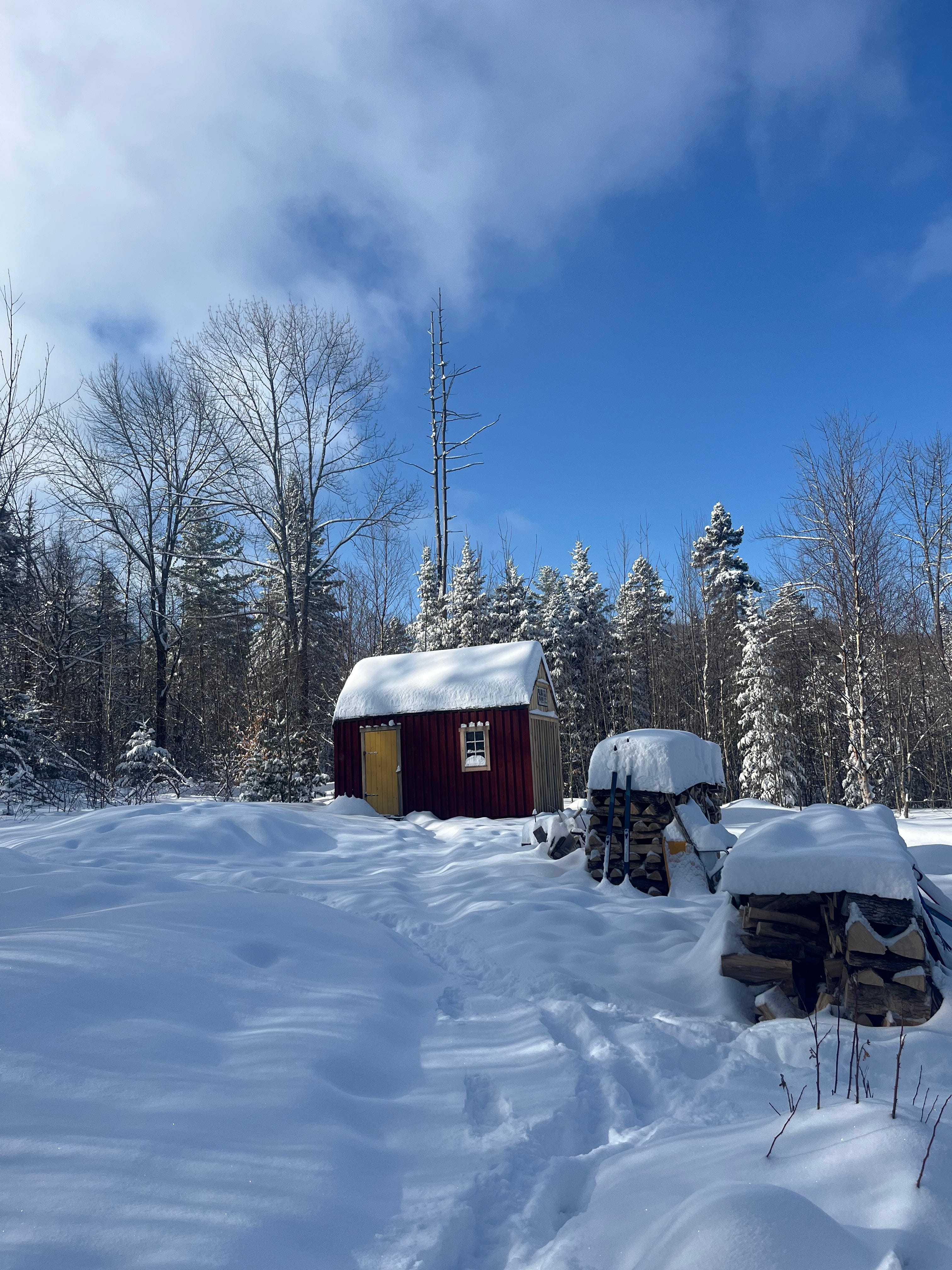 The deep snow of February is piling up, insulating our little cabin against the wind and dazzling our eyes on sunny days.