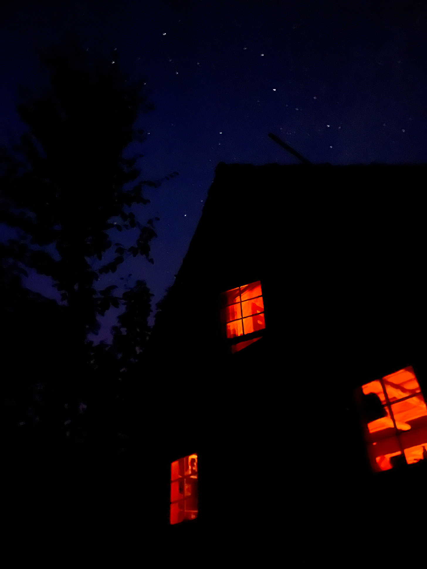 Perhaps this is why I feel so moved when I return home after dark from running errands or skiing with our children and see the soft warm light and woodsmoke emanating from our tiny cabin. Our life here is often hard; we haul water by hand and boil it on the wood stove for dishes and bathing; we keep our cold food in coolers outside; we drive half an hour to do laundry. In spite of the challenges, when I pull into our drive and contrast what I see with the view of other houses I have driven by in the dark—huge, flickering television screens and bright fluorescent lights—ours fills me with warmth. There’s that same feeling of life in our home—the life of flickering flame, of beams hewed by hand, of a space filled with handwoven baskets and hand-carved spoons.