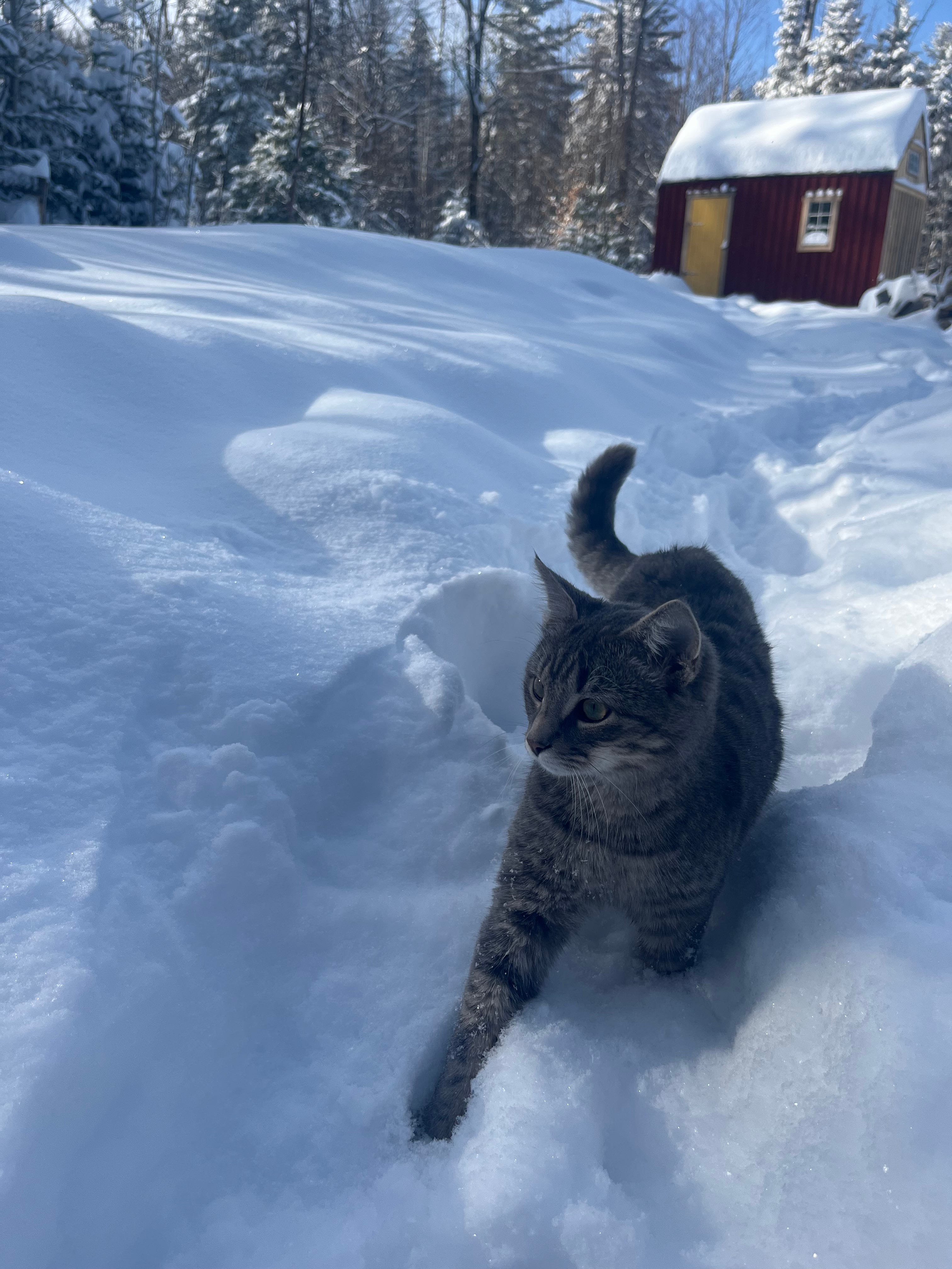 On the coldest nights we are still taking jars of hot water into bed with us, and we have begun to understand more about the purpose of the night caps and bed curtains referred to in older literature! After one very mild winter and two winters spent traveling in more temperate climes, we are reacclimating ourselves to the deep cold. Meanwhile our kitten Chaga seems to be part lynx or snow leopard.